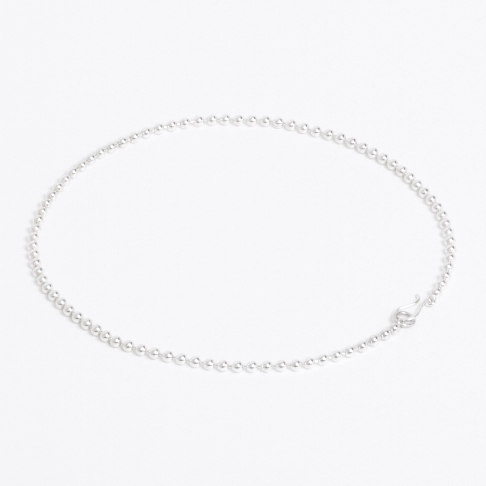 Ball chain N shortは、シャープなムードをもたらすショートネックレスです。チョーカーのような、心地よい着用感を提供します。