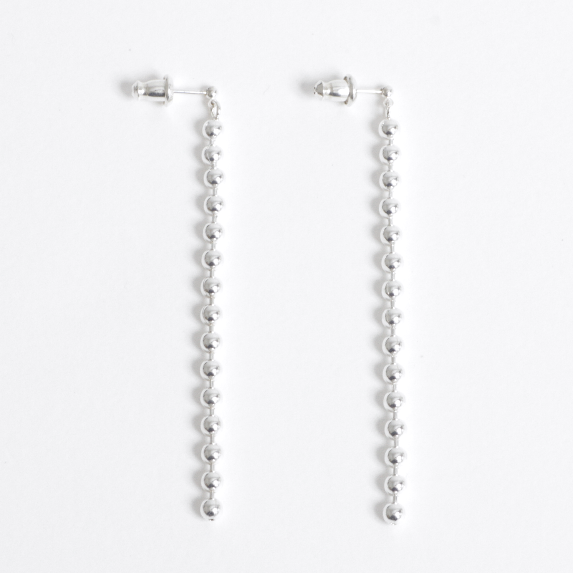 長さのバランス良く、耳元で優やかに揺れるチェーンが心地よい。華やかすぎず、軽やかさを演出。